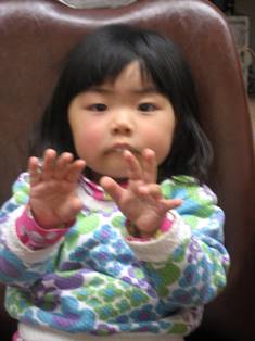 【KIDS 女の子】 2014.01.17 2歳になったばかりの柚奈ちゃんが、 お兄ちゃん、お姉ちゃんと一緒に定期検診にきました。 お母さんのおひざで、歯磨きをしてフッ素をぬりました。 とても上手にできたので 一人で座る練習をしました。 カメラに向かって、2歳のポーズです。