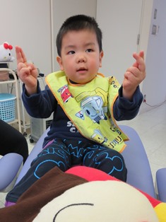 【KIDS 男の子】 2014.01.23 孝輔くんは、口が痛い!と言って歯医者にきました。 口内炎ができていました。 水分をしっかりとるようにしましょう。 2歳のポーズがじょうずにできました。 フッ素もぬりました