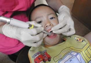 歯についた着色を電動歯ブラシさんでぴかぴかにしました。